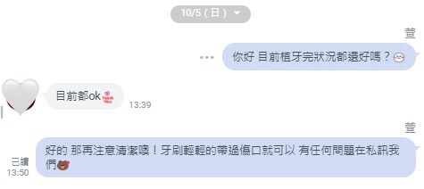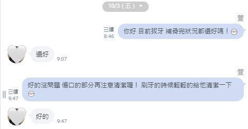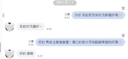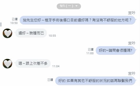 療程完成後,我們常透過官方LINE關心大家的恢復情形,確認是否有不適、疼痛或需要協助的地方。